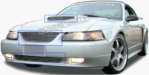 99 00 01 02 03 04 Ford Mustang Upper+Bumper+Hoodscoop 3pc Combo Billet Grille (For V8 Above Hood/Logo Covered)